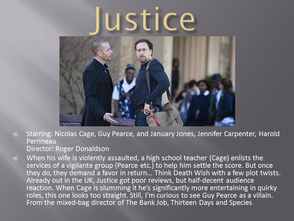 • Titles of the people involved in the film e.g. Director, Stars, Name of the film, Rest of cast. The order of titles can vary based on the hierarchy of the people involved, if the director is not as famous as the main character in the film the the director may strategically be put after the main character